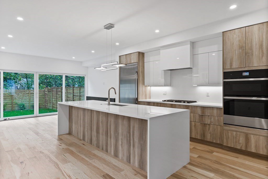 Brosco Exterior & Interior Doors • 5″ Hardwood Floors • Designo Italian Designer Cabinets • Quartz Countertops with Custom Waterfall Edge Features • Hansgroche Bathroom Fixtures • Toto Wall Mount Toilets with Gerber in Wall Tanks and Push Plates • Custom Showers with Marble Details • Touchless Kitchen Faucets • Quartz Soaking Tub (72 Inches for Two People) • Fir Ceilings in Custom Stains • Custom Mahogany Master Closet • York HVAC with Built in Humidifier and Ionization System • Radiant Heated Floors • 10′ Ceilings Throughout and 12′ Ceilings in Master Suite • Tray Ceilings in Bedrooms and Living Room with Accent Cove Lighting • Kickplate and Undercabinet Lighting in the Kitchen • Brazilian Ipe (Ironwood) Deck with Built-in Benches • Wrought Iron Railing with Mahogany Handrails • LED Lighting Throughout • Rinnai On Demand Hot Water Supply • Certainteed Architectural Roofing Shingles • Andersen Windows • James Hardie Siding with Natural Cedar Entryway • Certainteed Split Stone Foundation Masonry • Commercial Grade Black Gutters • Custom Garage Doors with Quiet Direct Drive Motors & Much More